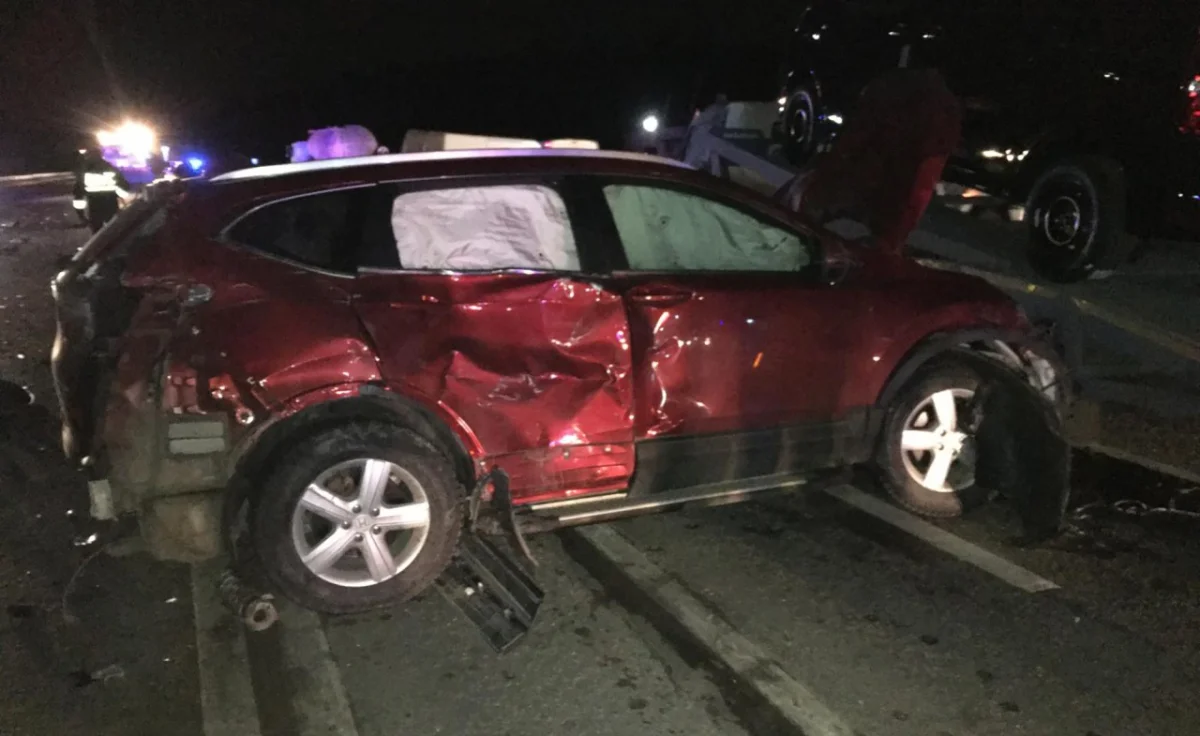 От удара «Пежо» врезался в «Хонду», а та машина – в грузовик.