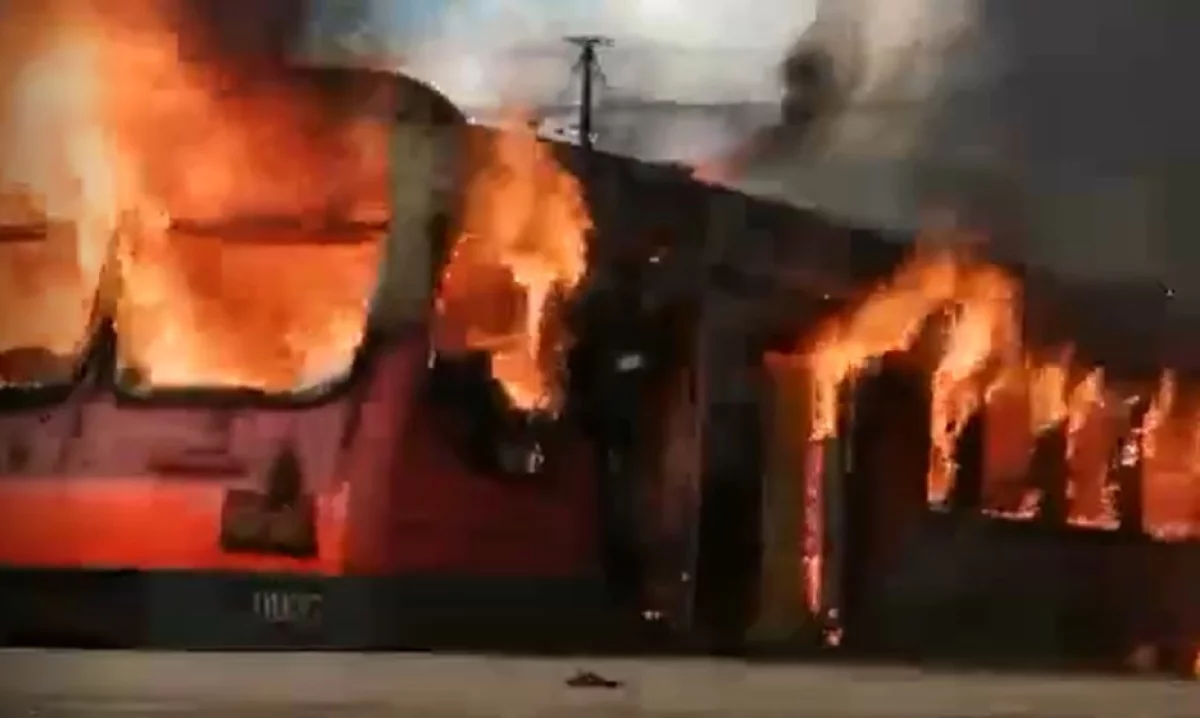 В результате пожара хвостовой вагон электрички полностью выгорел. Видео выложили в группе ВК «Типичный Малоярославец».