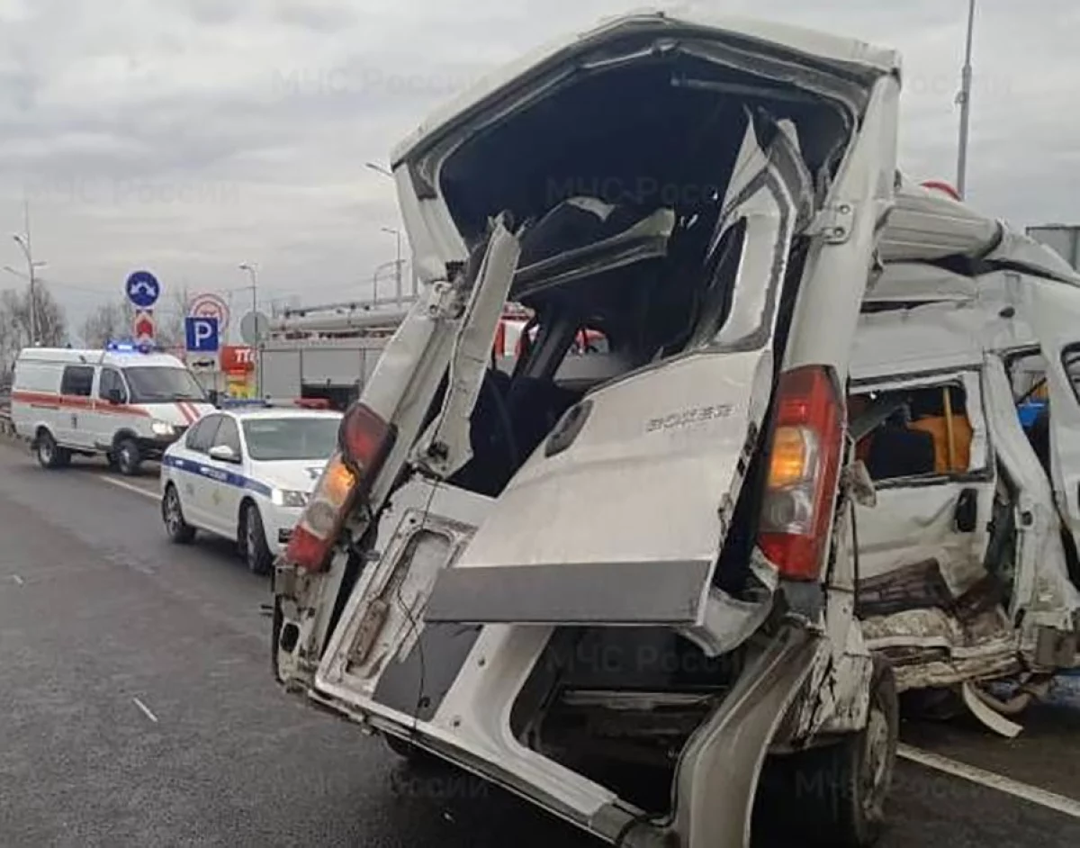 Судя по фото с места происшествия, большегруз врезался в боковую часть микроавтобуса.