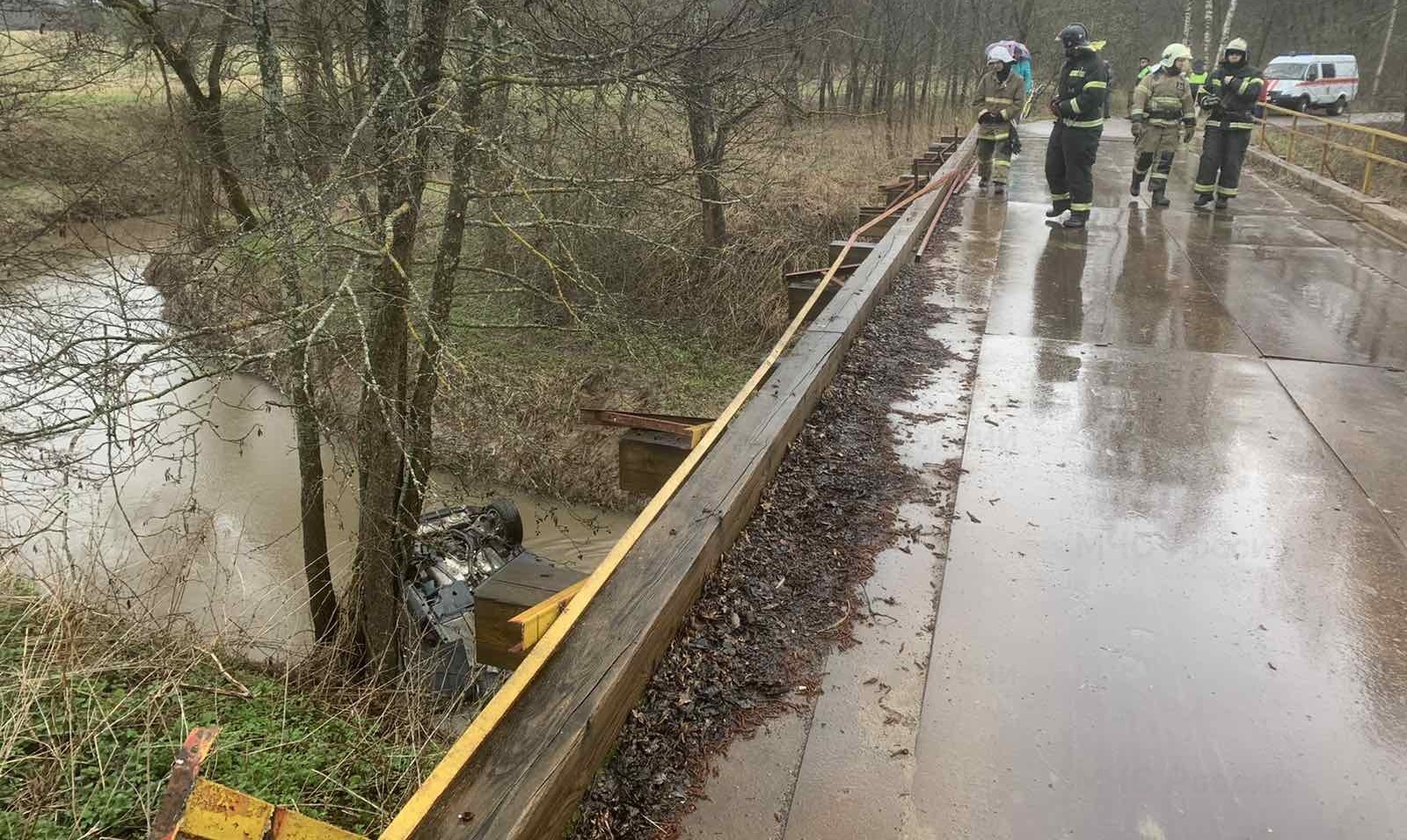 По предварительной информации, автомобиль «Ленд Ровер» упал с моста в реку Суходрев.
