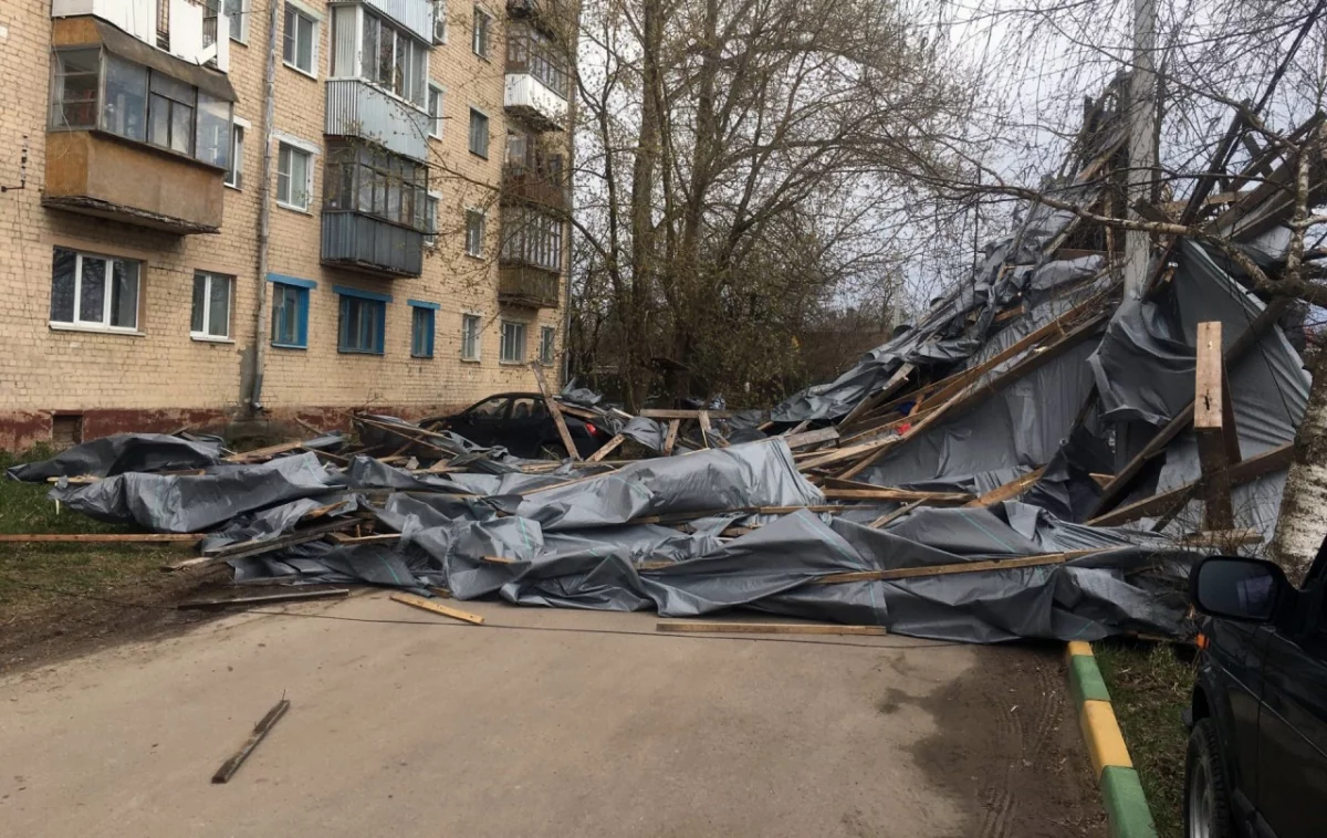 В воскресенье, 25 апреля, ЧП произошло в Калуге на улице Дачной в Ромодановских Двориках. Сильный ветер сорвал с крыши пятиэтажного дома №18 временный навес из досок и пленки, который возводили рабочие для последующего ремонта кровли.
