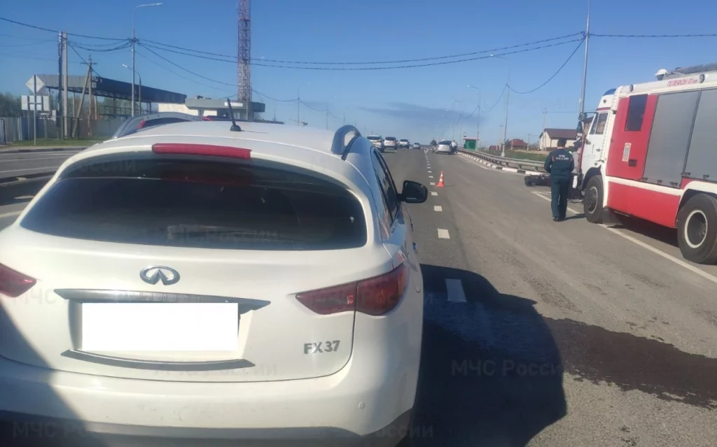 По предварительным данным, 43-летняя женщина за рулем автомобиля «Инфинити» двигалась со стороны Калуги, пыталась развернуться и сбила встречного мотоциклиста на «Хонде».