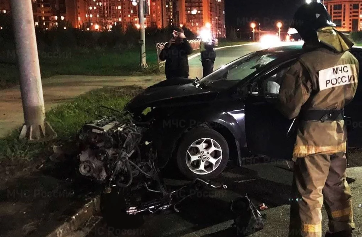 По предварительным данным, около 22:50 35-летний водитель автомобиля «Форд Фокус» двигался в сторону «Кошелева», не справился с управлением и врезался в столб.