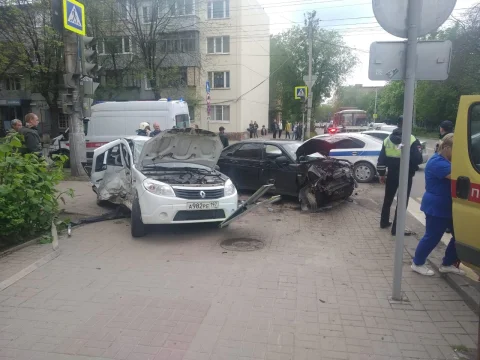 В центре Калуги два автомобиля вылетели на тротуар после ДТП