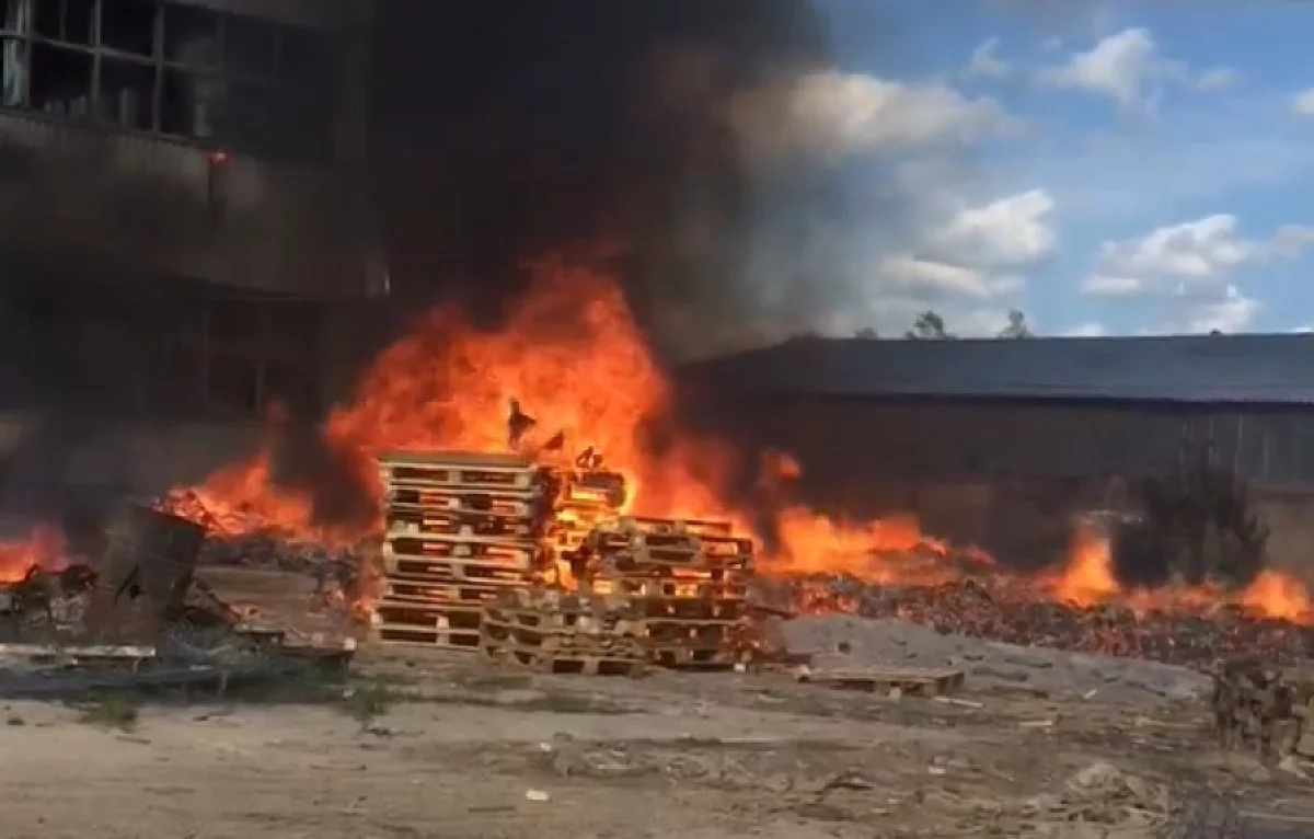 В Калужской области крупный пожар произошел в ангаре с паллетами