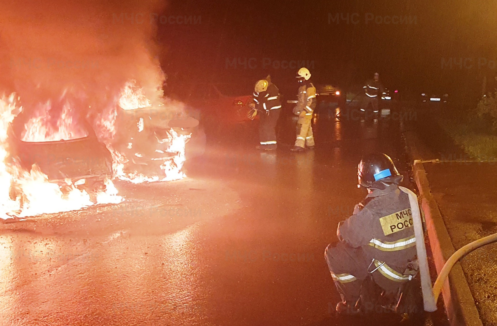 Сообщение о пожаре поступило в 2:37 ночи. Все сгораемые конструкции «Ниссана» уничтожены. Из людей никто не пострадал.
