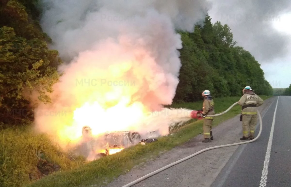 По предварительным данным, около 3:35 водитель легковушки не справился с управлением и съехал в кювет. Там машина перевернулась и загорелась.