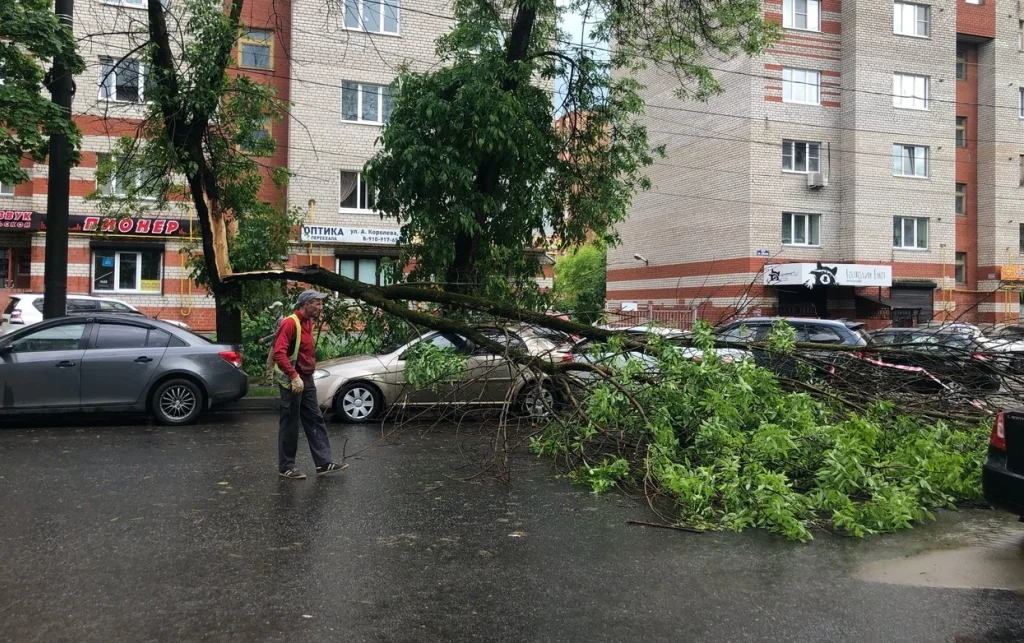 Во вторник, 8 июня, на Калугу обрушился сильный ливень с градом. Во время дождя на улице Тульской дерево сломалось и упало на припаркованный у края проезжей части автомобиль.