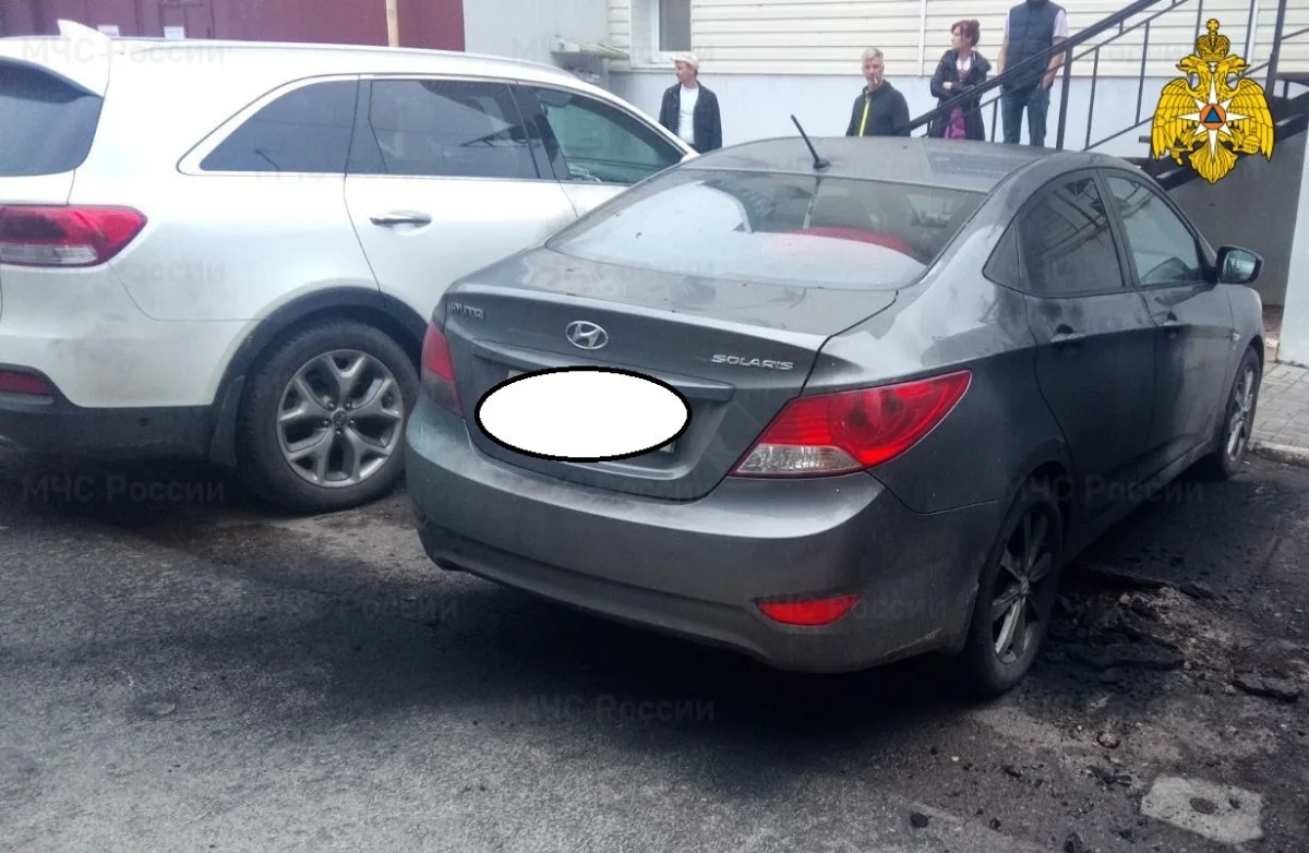 Загорелся подземный электрический кабель. В результате огонь повредил припаркованные «Хендай Солярис» и «Киа».