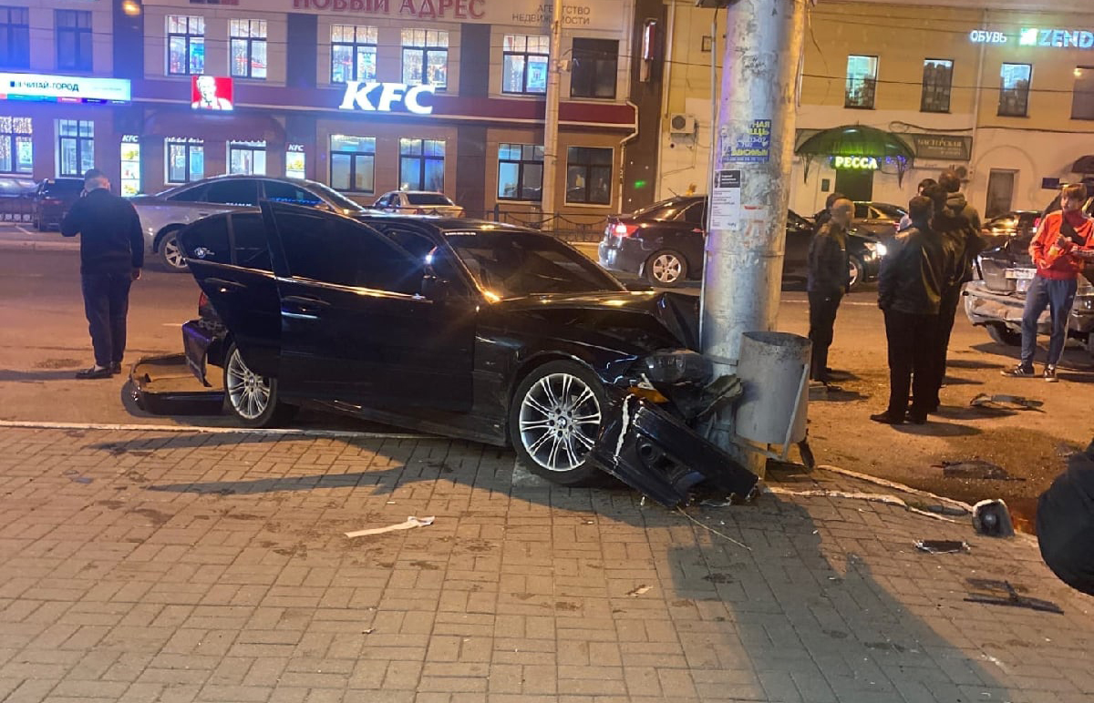 По предварительным данным, в полночь водитель легкового «БМВ» двигался в сторону сквера Мира и опережал попутные автомобили, перестраиваясь из полосы в полосу. После очередного такого маневра машину занесло. «БМВ» отбросило вправо на две другие легковушки, а потом в паркомат и столб.
