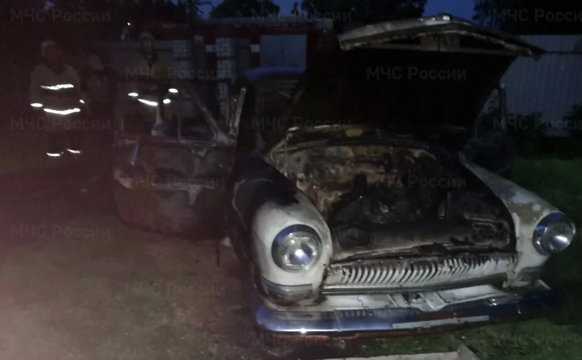 Автомобиль загорелся примерно в 21:20. Уничтожены сгораемые конструкции «Волги».