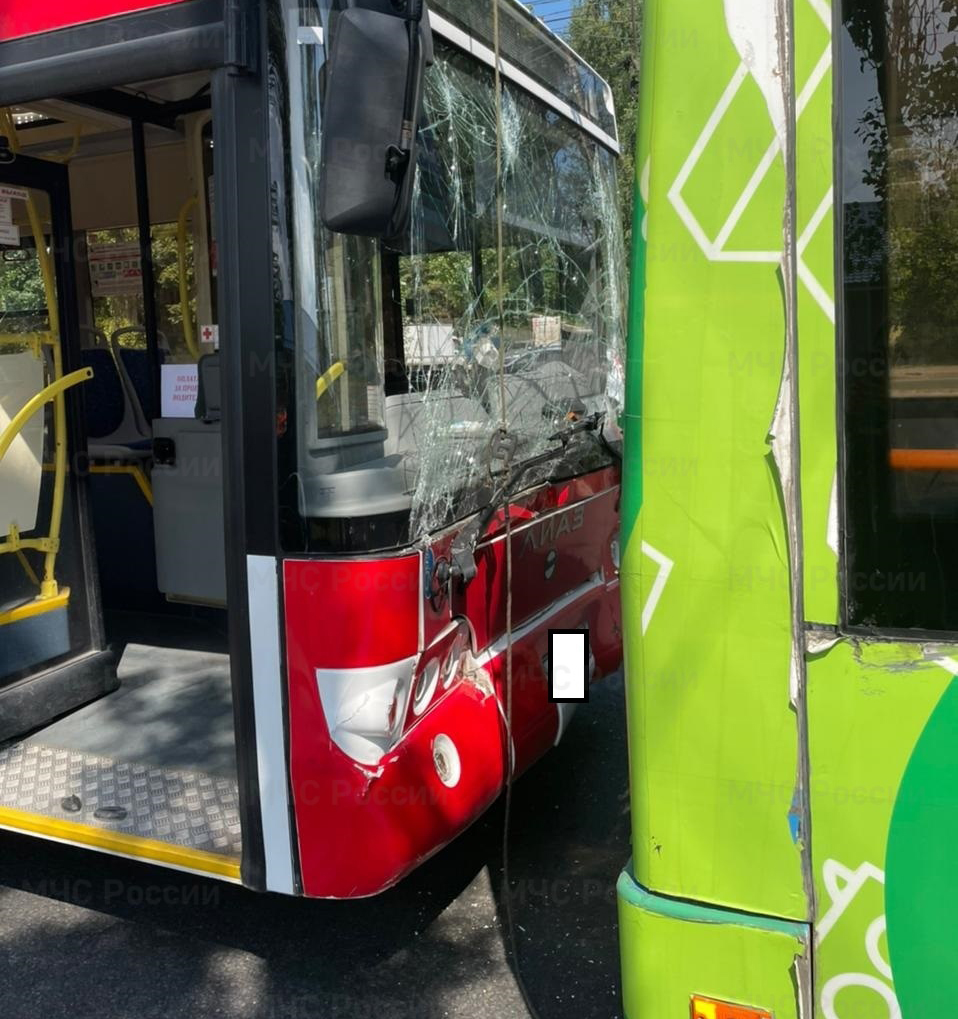 По предварительным данным, оба транспортных средства двигались в сторону центра, и водитель автобуса врезался в троллейбус.