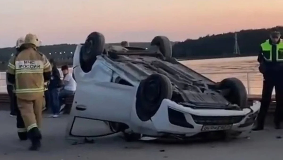 Водитель не справился с управлением и улетел на нижний ярус. Машина несколько раз перевернулась. Пострадавших среди пешеходов нет.