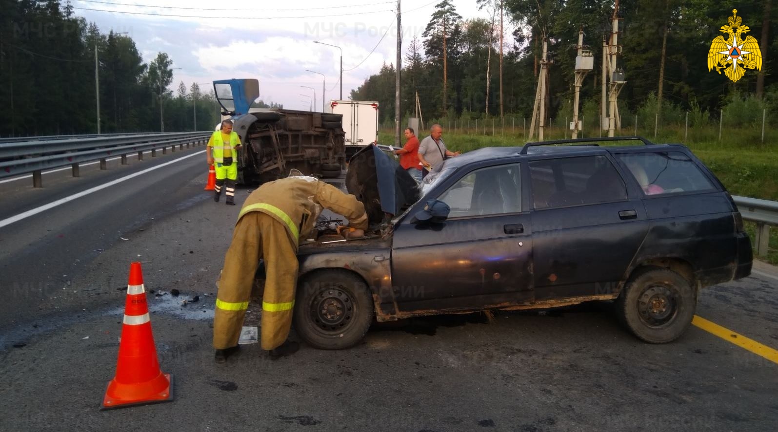 По предварительным данным, недалеко от поворота на Тихонову Пустынь столкнулись грузовая «Газель» и «Лада». От удара грузовик перевернулся.
