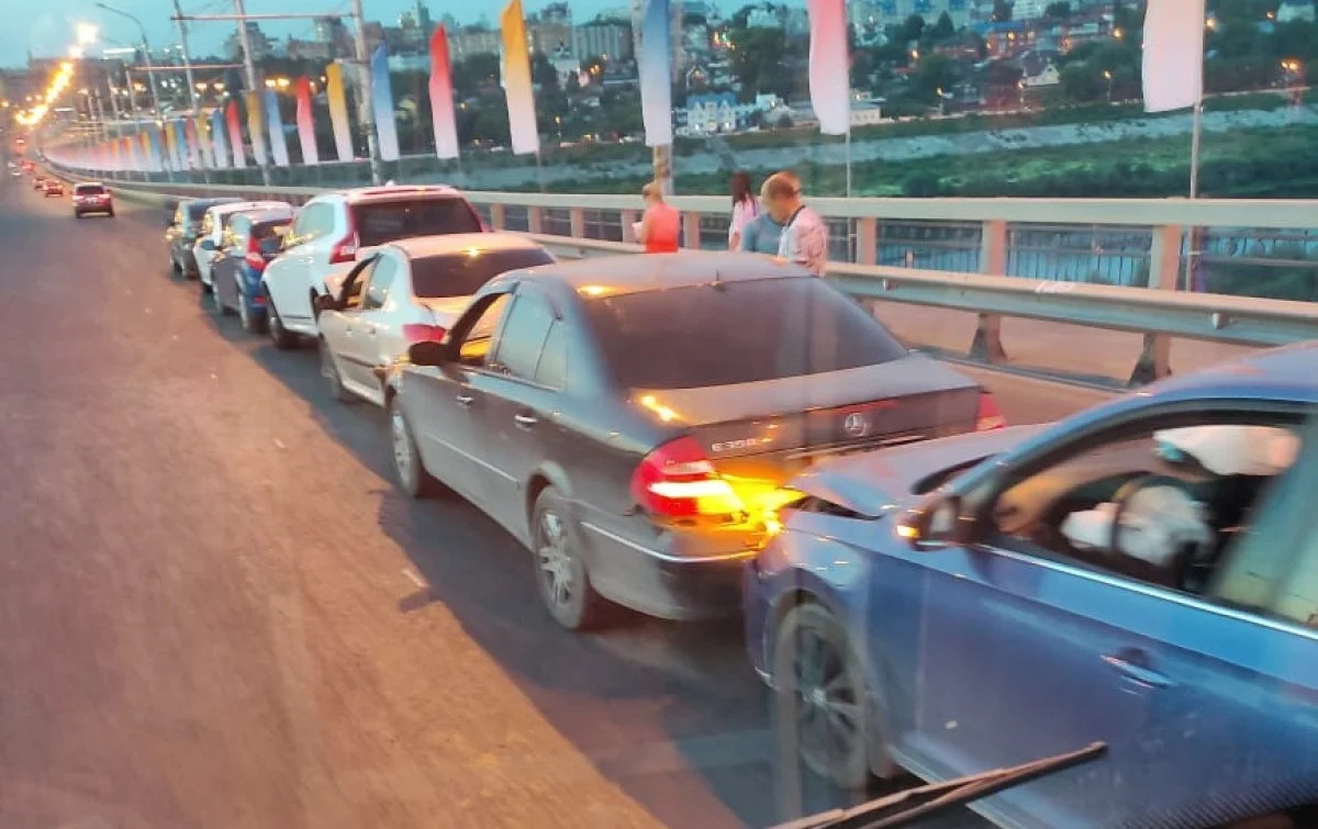 Вечером во вторник, 17 августа, ДТП с участием семи автомобилей произошло на Гагаринском мосту в Калуге. Фото выложил участник группы «Калуга ДТП» в социальной сети «ВКонтакте».