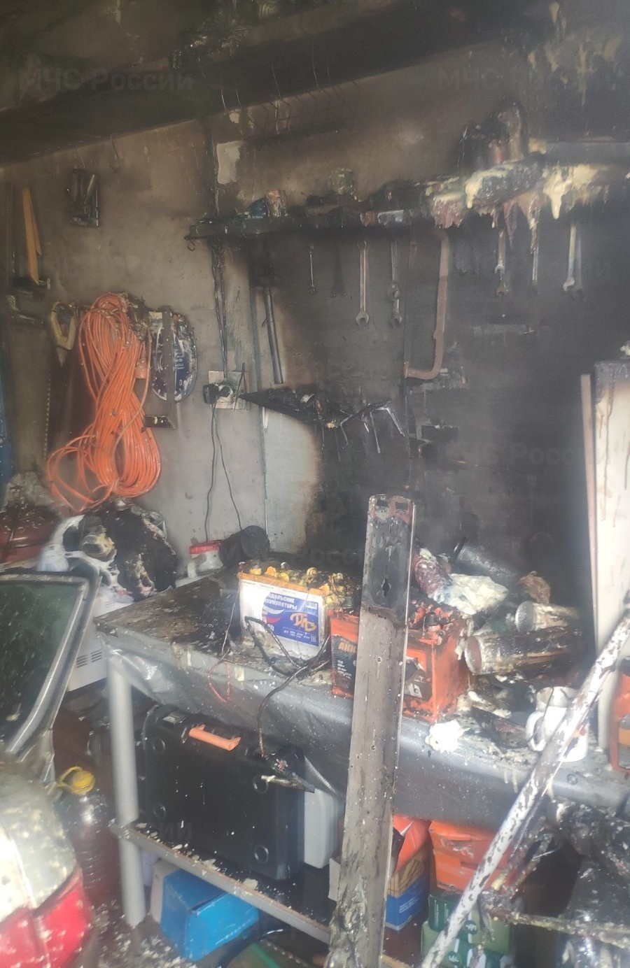 Огнем повреждены инструменты, стены и потолок, а также находившийся в гараже автомобиль.