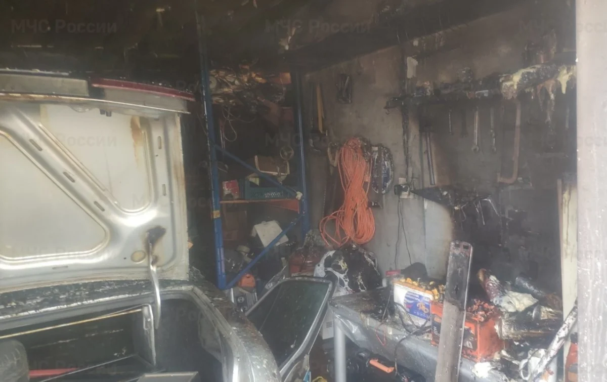 Огнем повреждены инструменты, стены и потолок, а также находившийся в гараже автомобиль.