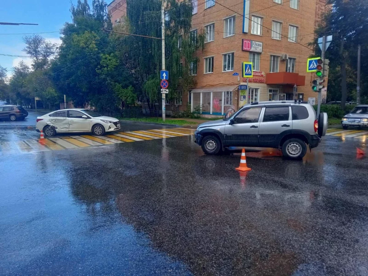 В центре Калуги водитель «Хендая» врезалась в «Шевроле Ниву» и сбила пешехода