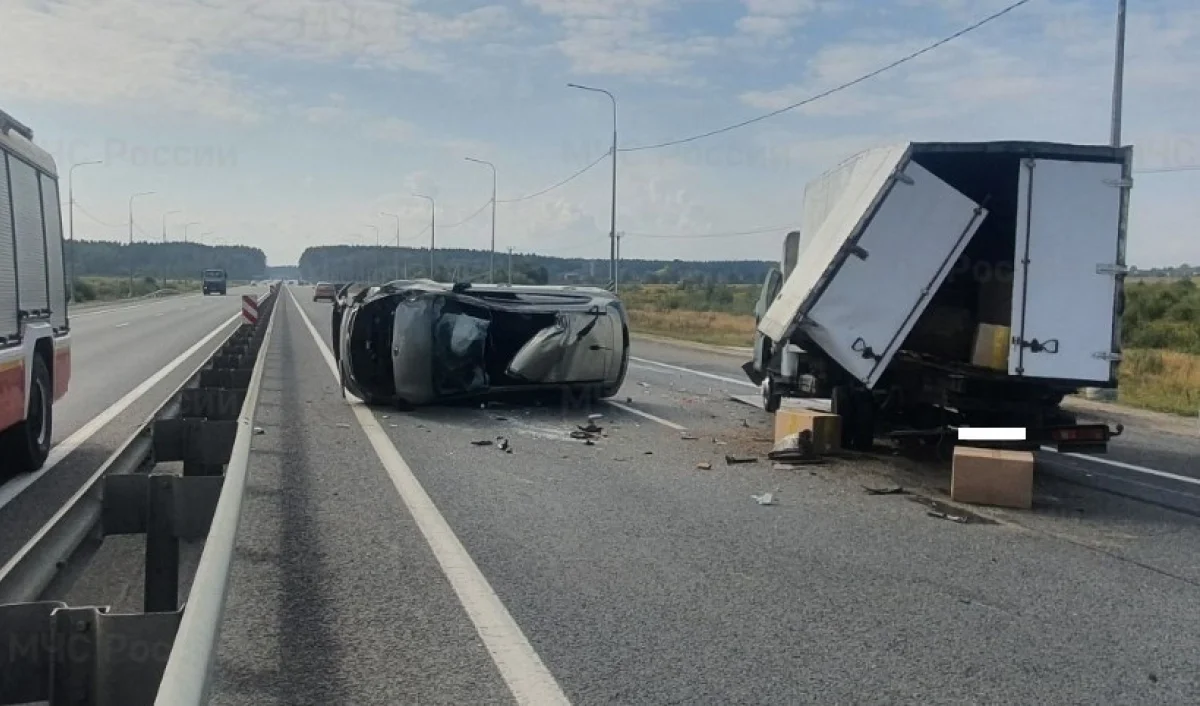 На окружной дороге в Калуге «Киа» перевернулся в массовом ДТП
