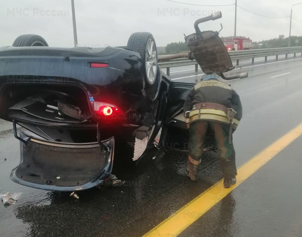 В Калужской области три человека пострадали в перевернувшейся на трассе «Мазде»