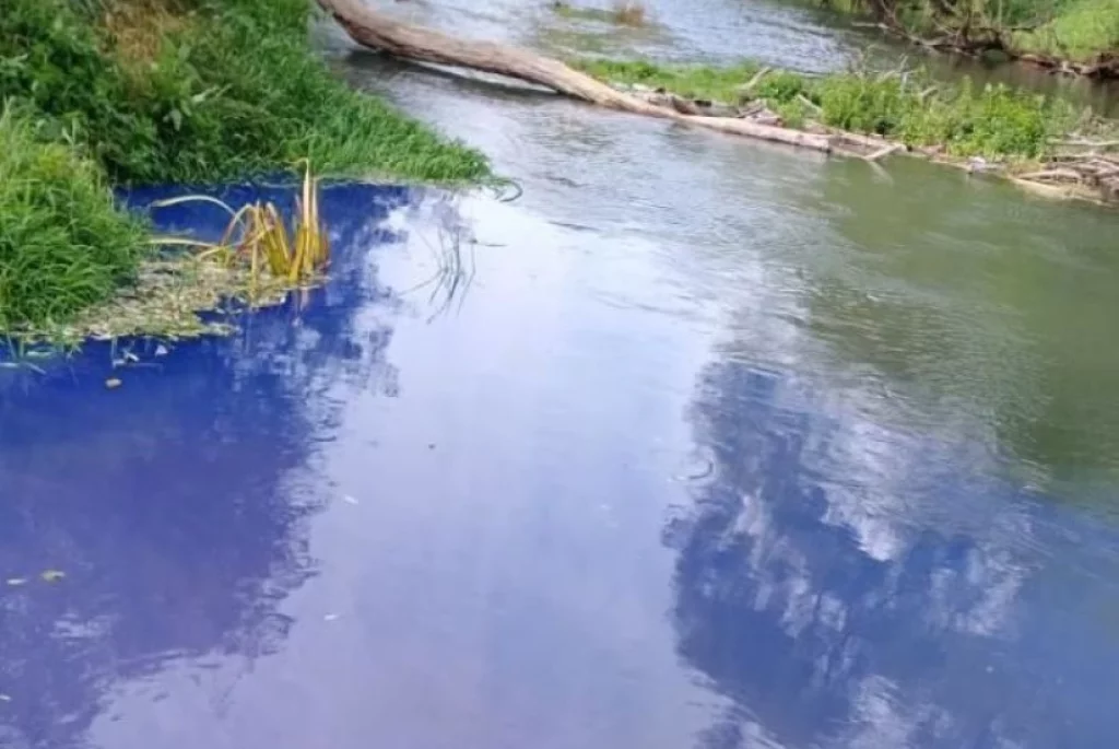 В Калужской области река окрасилась в синий цвет из-за сбросов предприятия