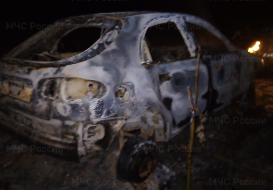Фото сгоревшего автомобиля опубликовало МЧС.