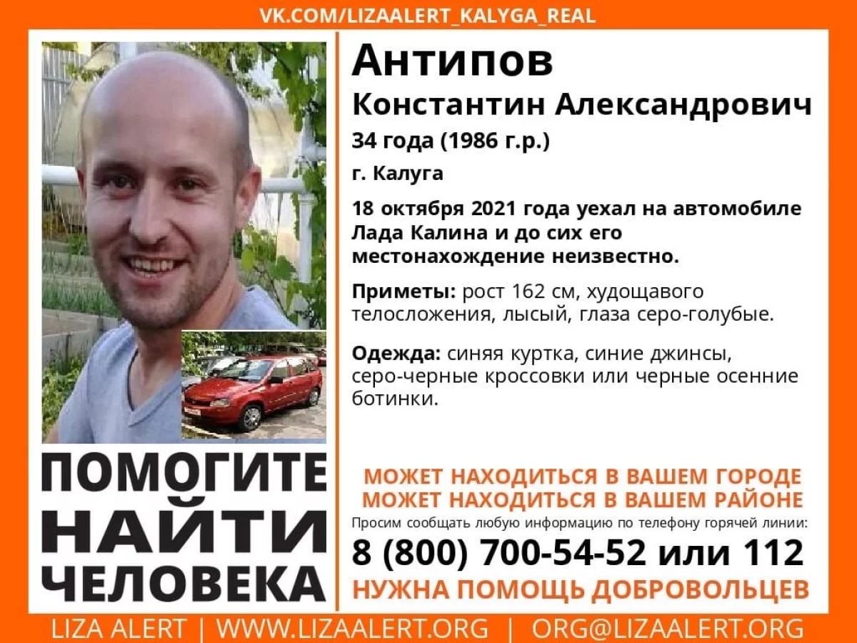 В Калуге пропал 34-летний Константин Александрович АНТИПОВ, передает поисково-спасательный отряд «Лиза Алерт» в субботу, 23 октября.