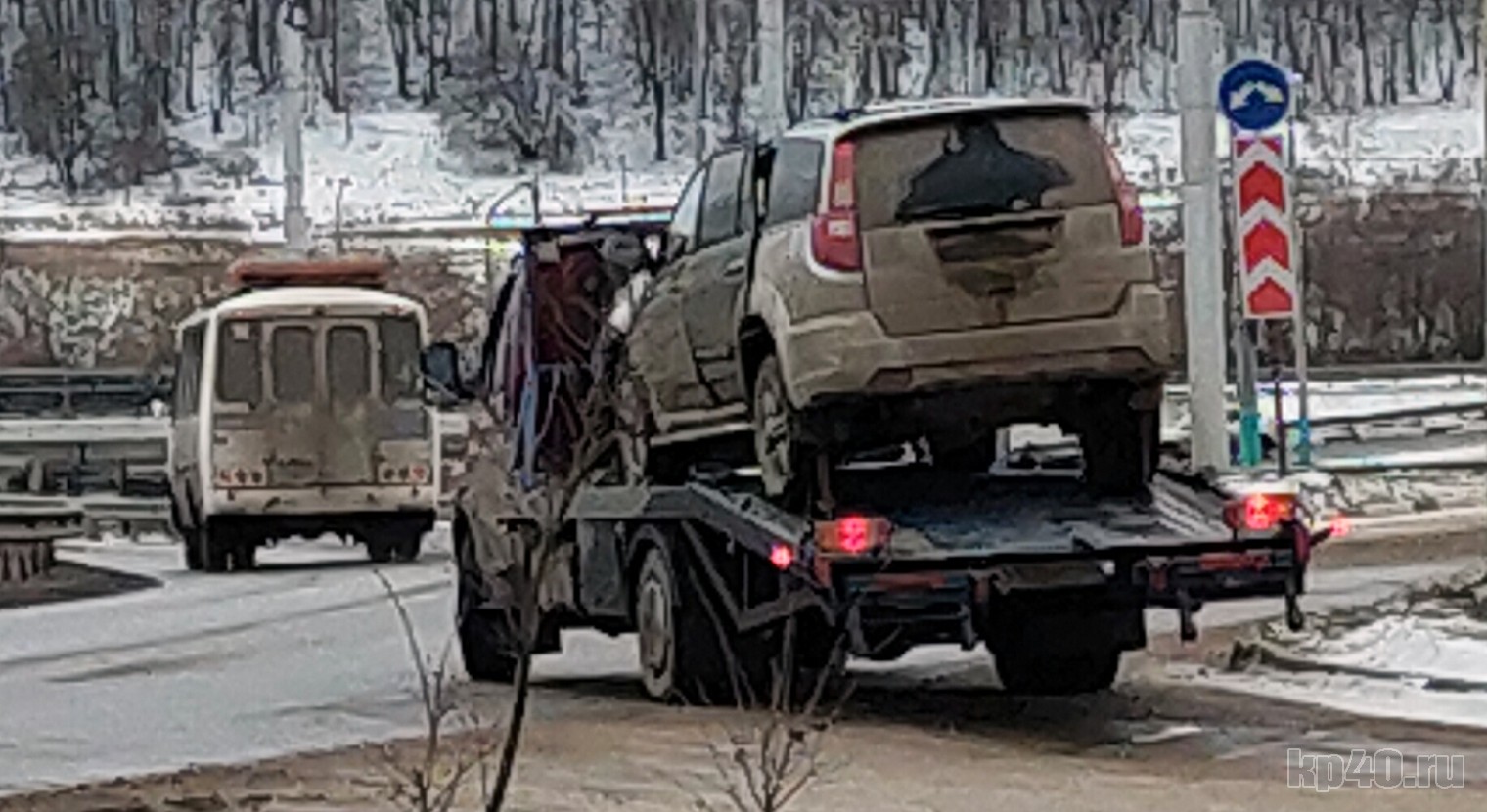 Разбитый автомобиль увезли на эвакуаторе.