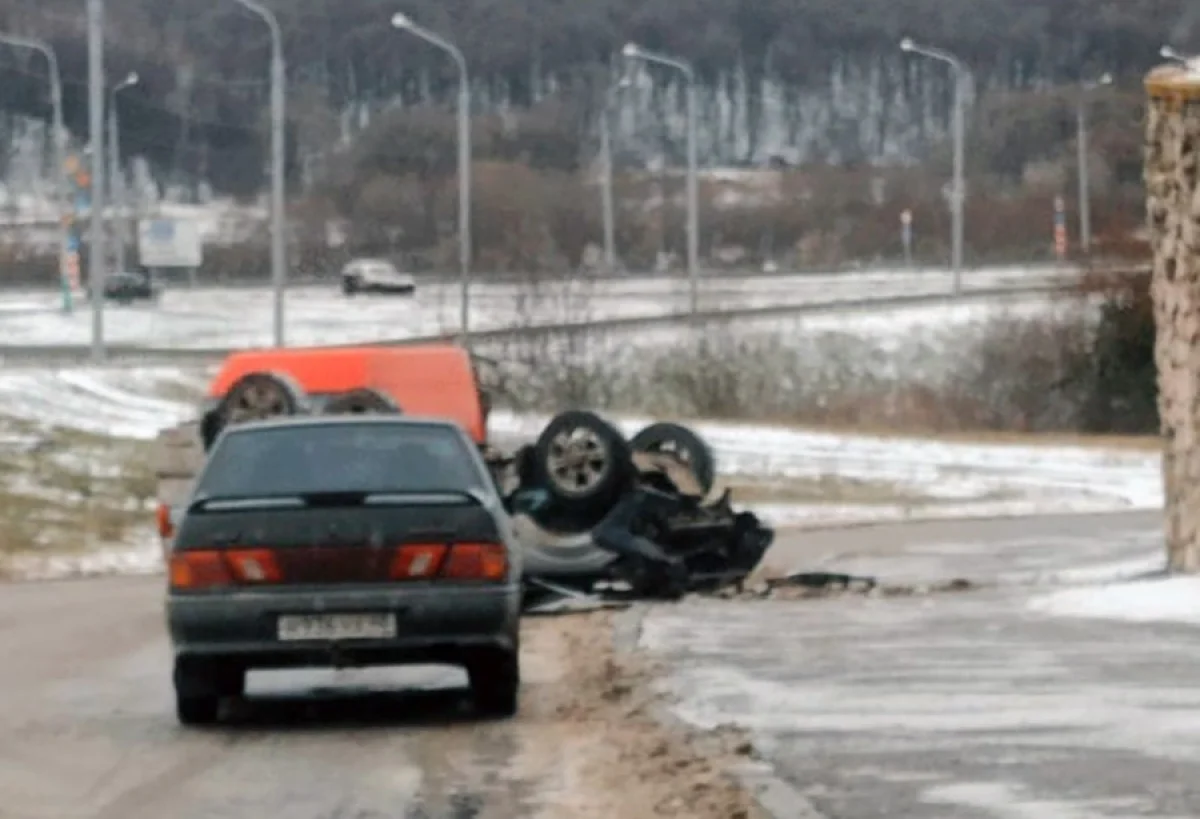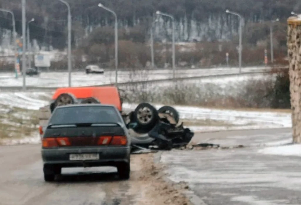 Около 12:30 в среду, 1 декабря, на улице Гагарина в Калуге упал с обрыва и перевернулся внедорожник. ДТП произошло у дома №13.