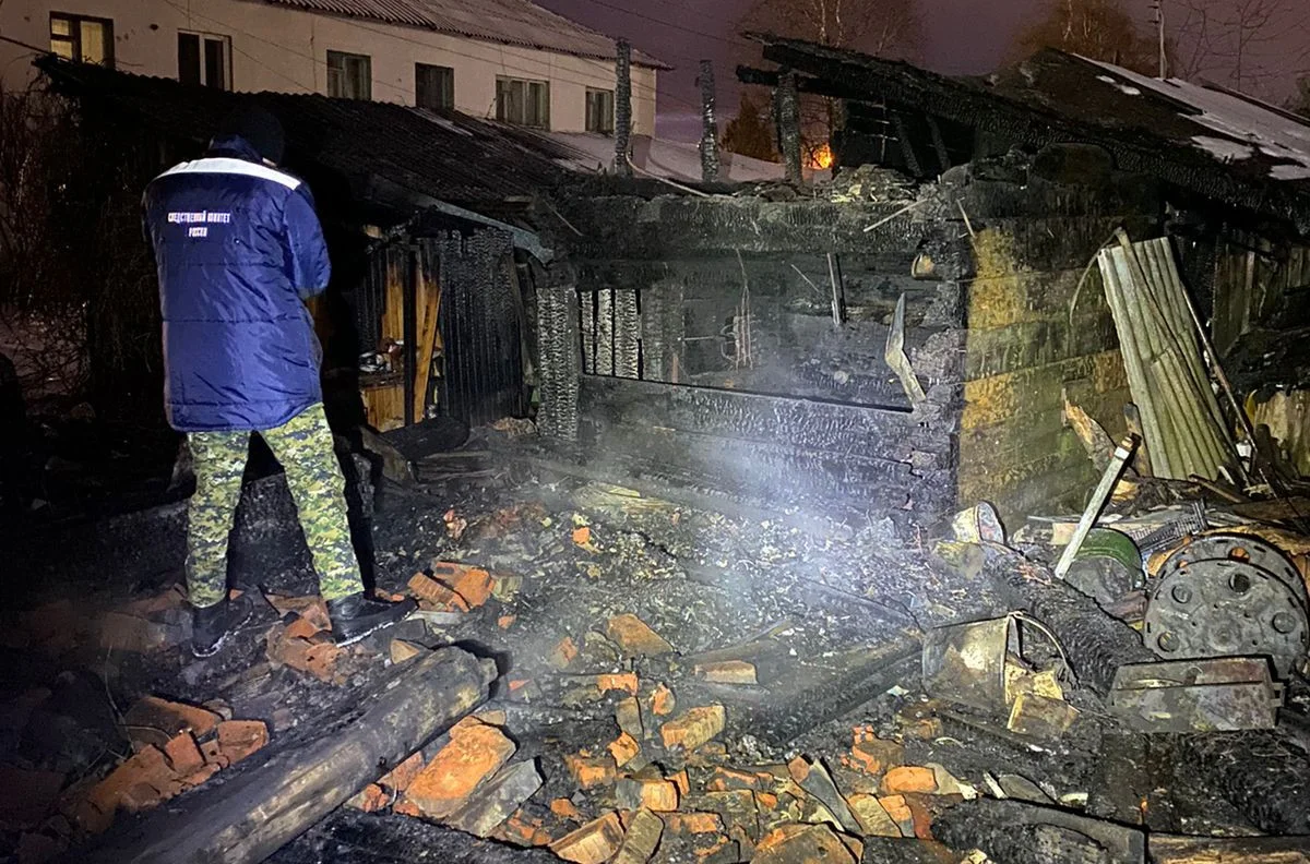 Личность погибшего сейчас устанавливается. По предварительным данным, хозпостройки загорелись примерно в 3 часа ночи из-за нарушения правил эксплуатации печки.