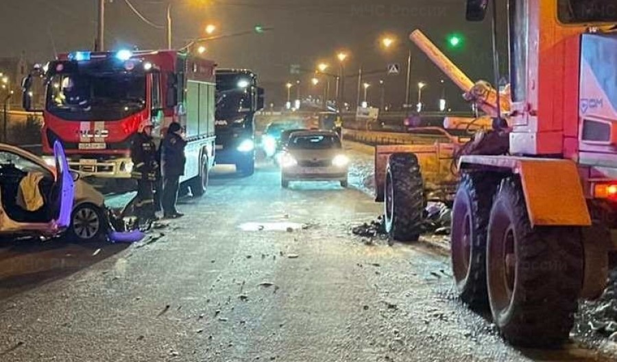 По предварительным данным, в районе съезда на набережную столкнулись легковой автомобиль «Пежо» и снегоуборочный трактор.