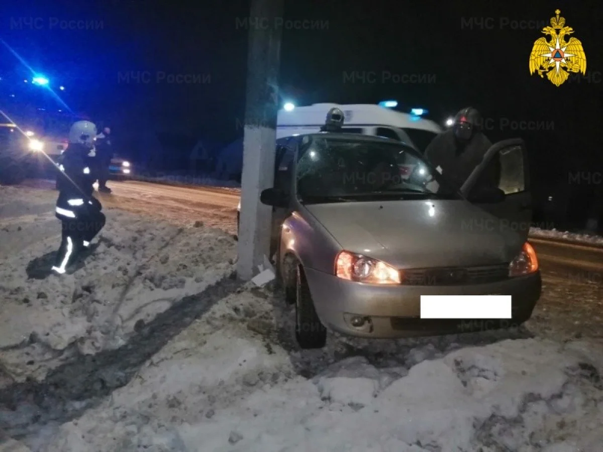 Водитель «Лады» врезался в столб в Кирове Калужской области