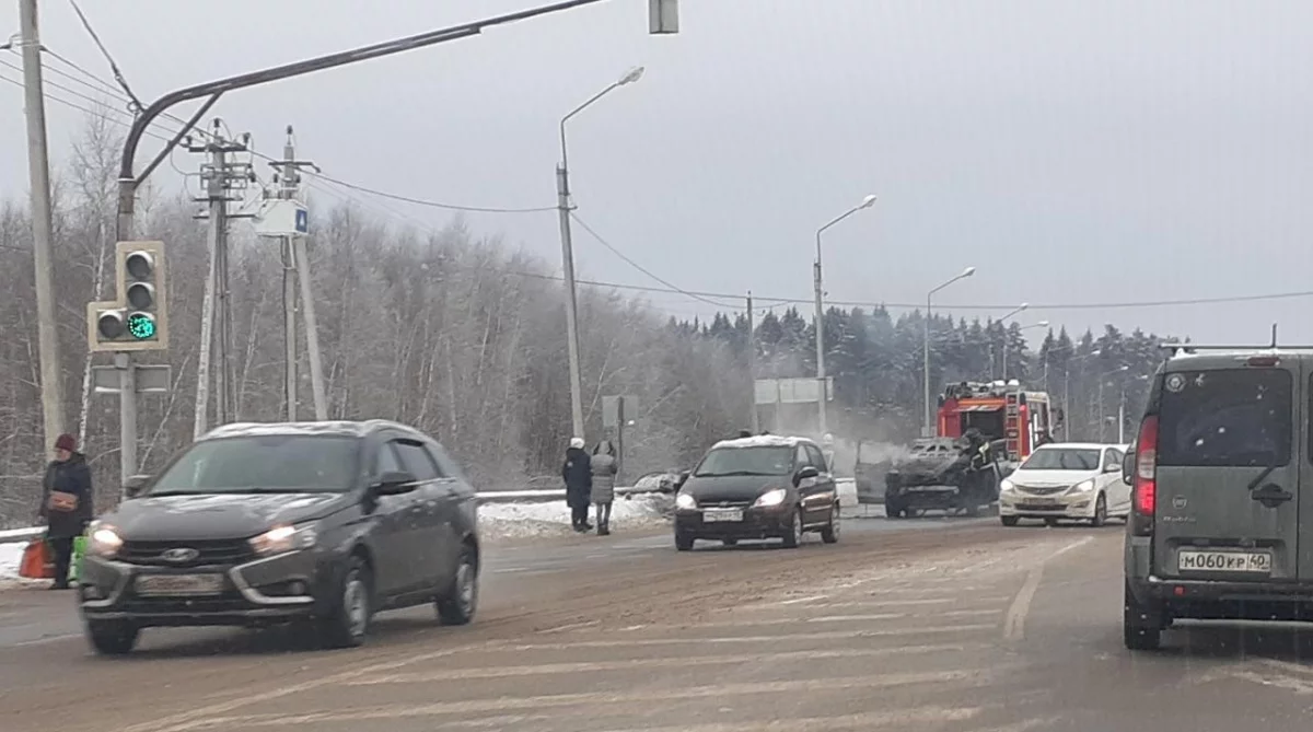 Днем во вторник, 4 января, на Тульском шоссе под Калугой загорелся автомобиль. Машина стоит на перекрестке недалеко от известного торгового центра. Никаких видимых признаков дорожно-транспортного происшествия нет.