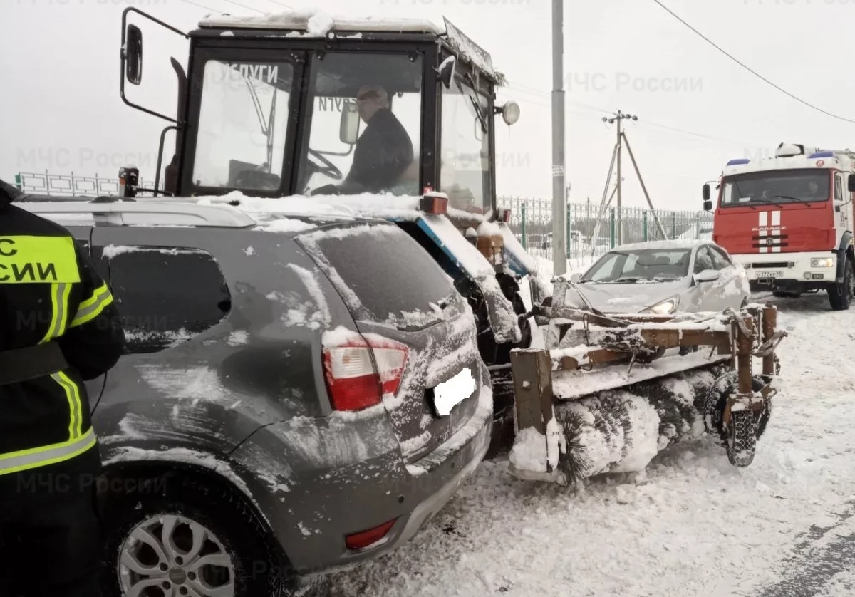 В Калуге «Ниссан» столкнулся со снегоуборочным трактором
