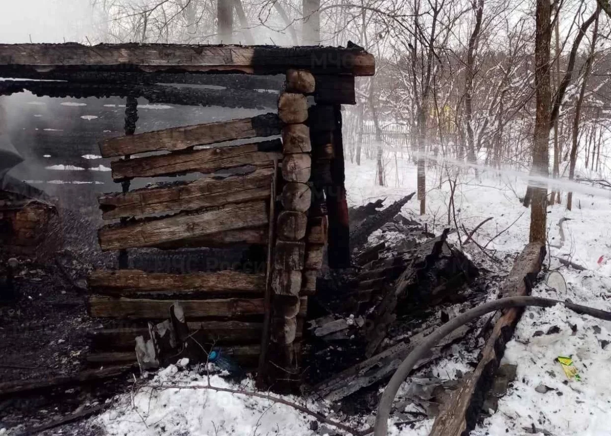 Огонь полностью уничтожил деревянную баню.