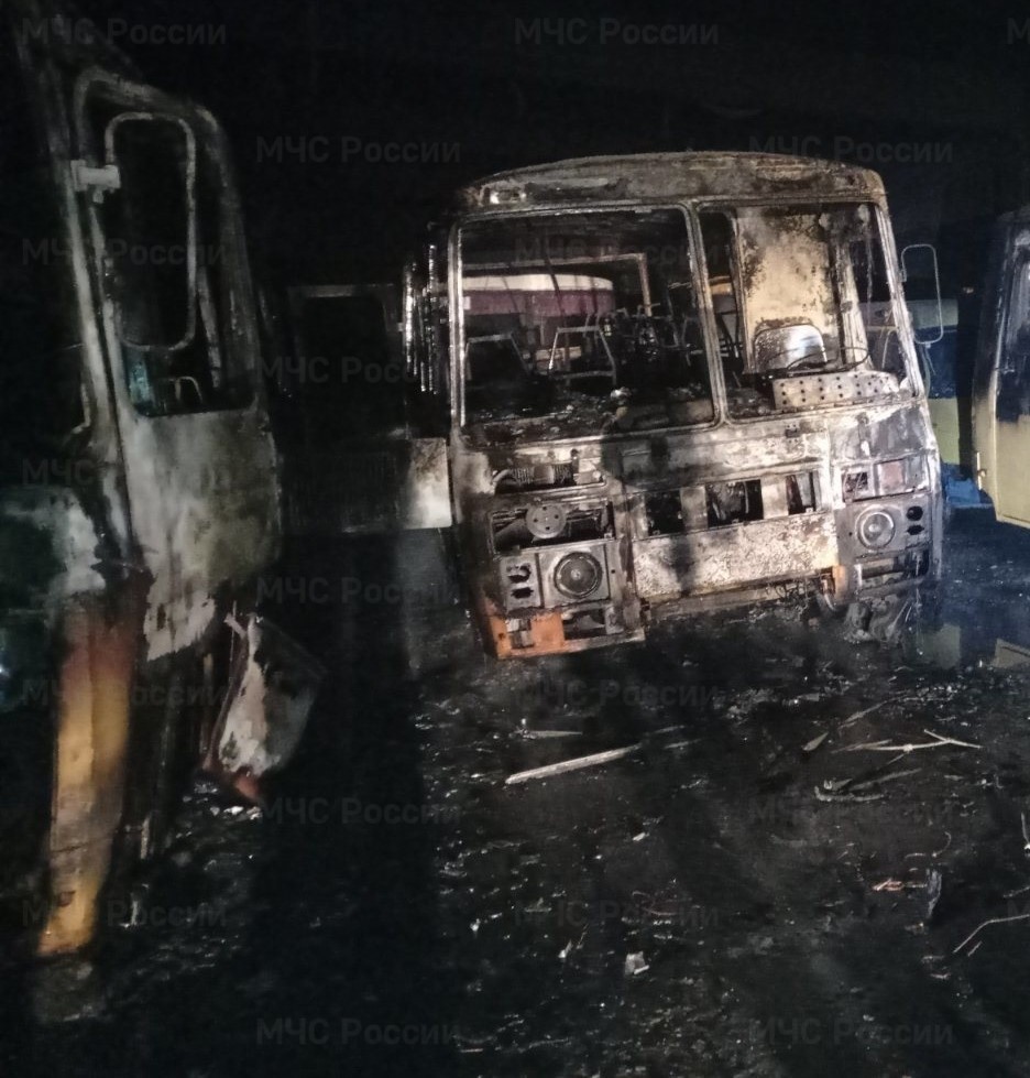 Около 2:50 огонь уничтожил несколько автобусов ПАЗ.