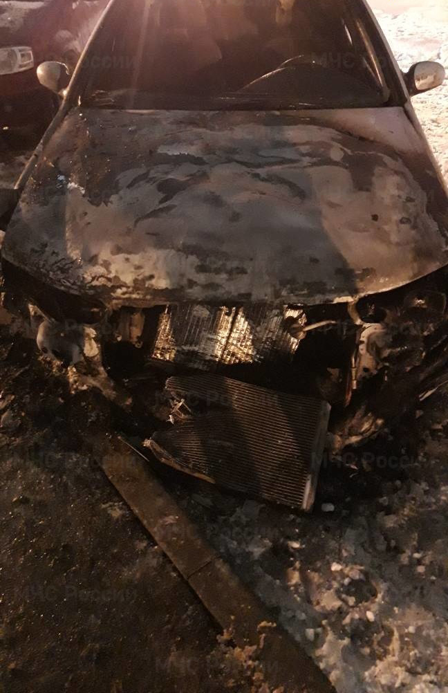 По предварительным данным, около часа ночи загорелся легковой автомобиль «Пежо».