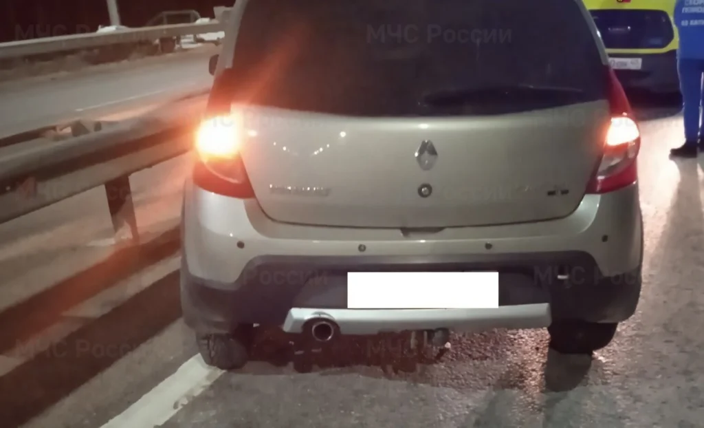 По предварительным данным, водитель легкового автомобиля «Рено» не справился с управлением и врезался в металлический отбойник.
