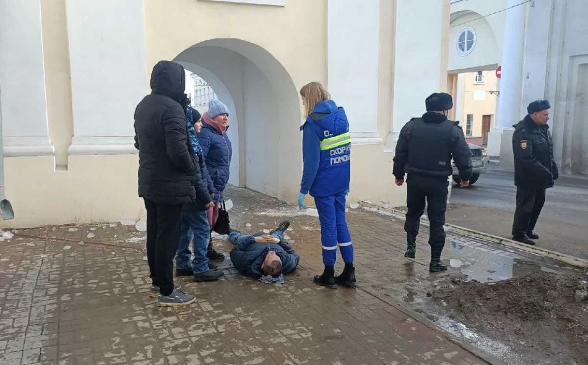 - Когда выходил из арки с крыши дома на него упала глыба, - рассказывают очевидцы. - Жена и сын успели отскочить. У мужчины при визуальном осмотре травма головы. Скорая приехала быстро. Мужчине оказывается помощь.