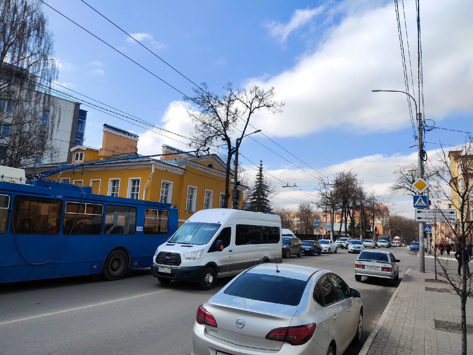 Днем в понедельник, 19 апреля, в Калуге образовались пробки на улицах Гагарина, Королева и Кирова.