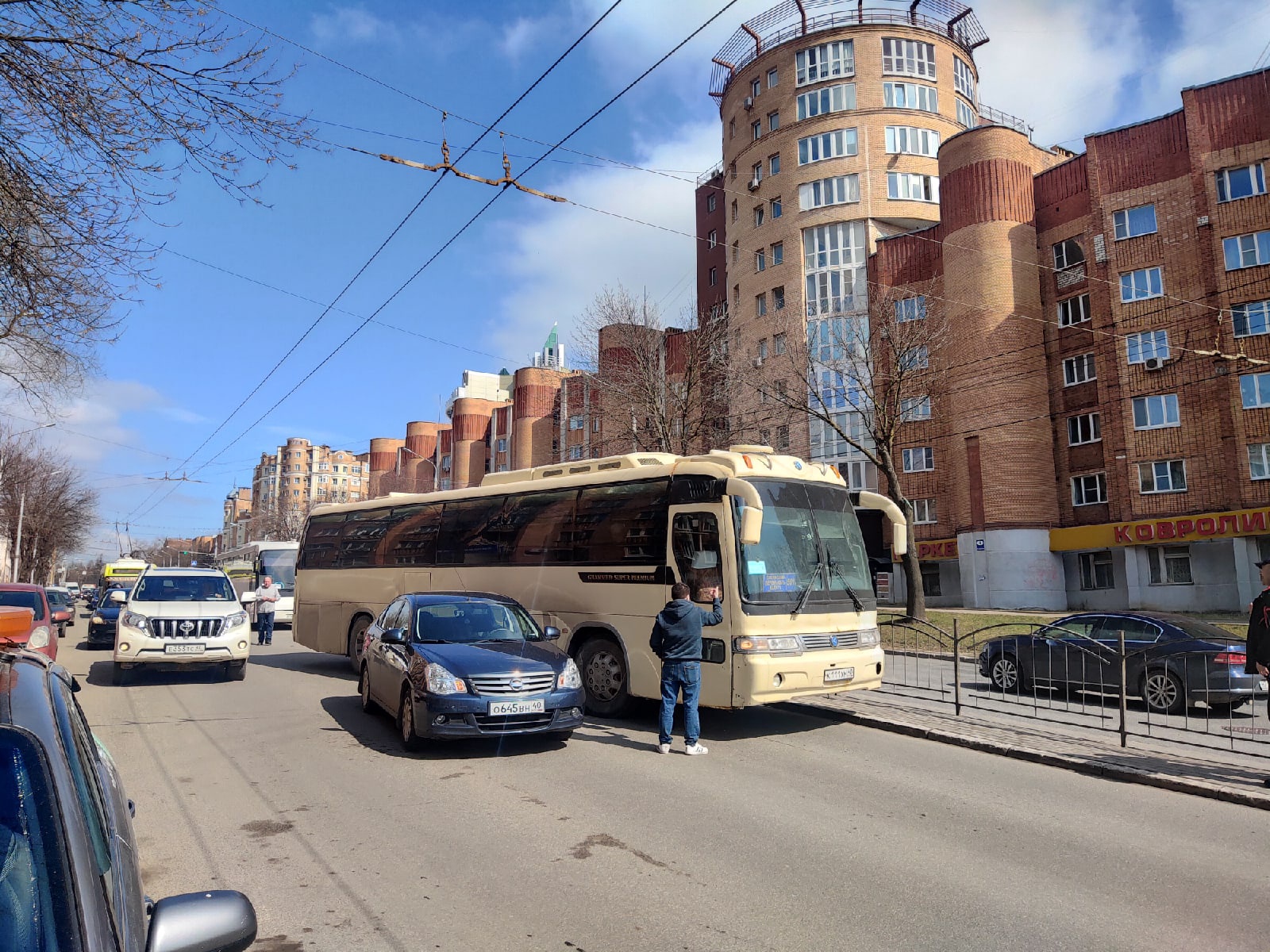 Автомобили участников ДТП перегородили проезд со стороны центра. Большие автобусы с трудом проезжают мимо поврежденных легковушек.