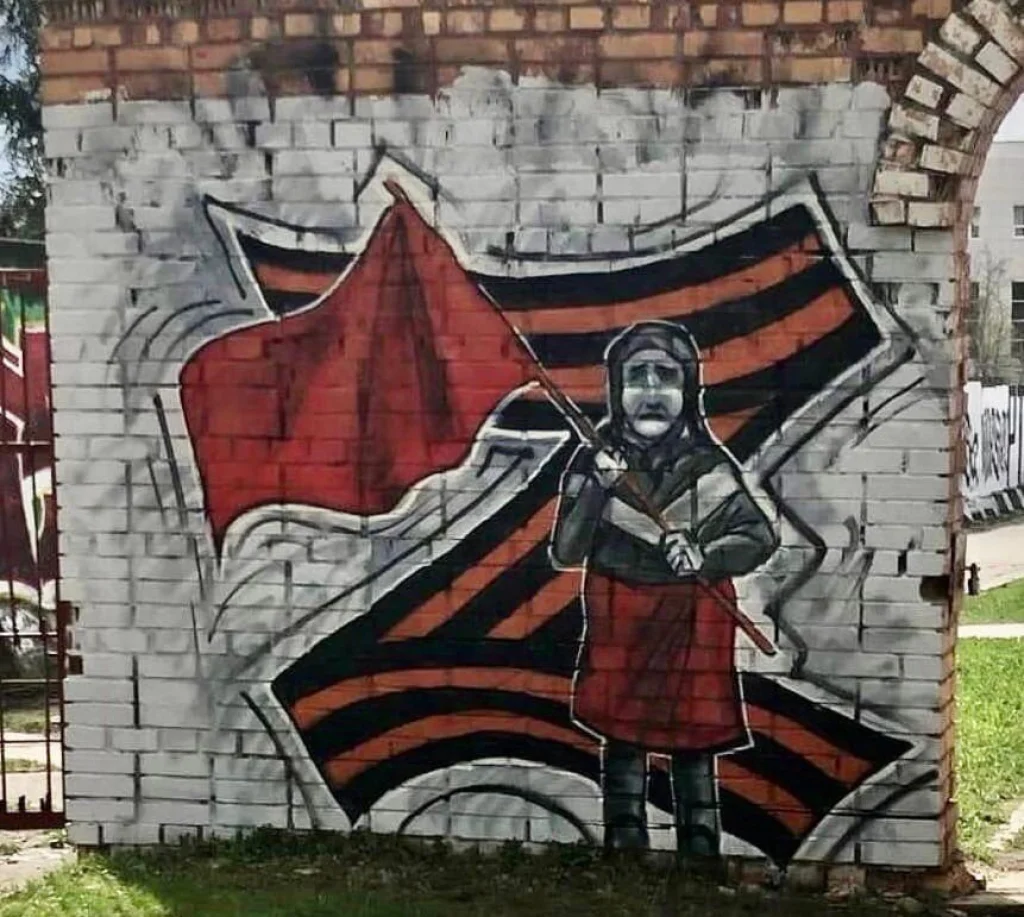 В Обнинске закрасили рисунок бабушки с красным флагом, появившийся на одной из арок города.