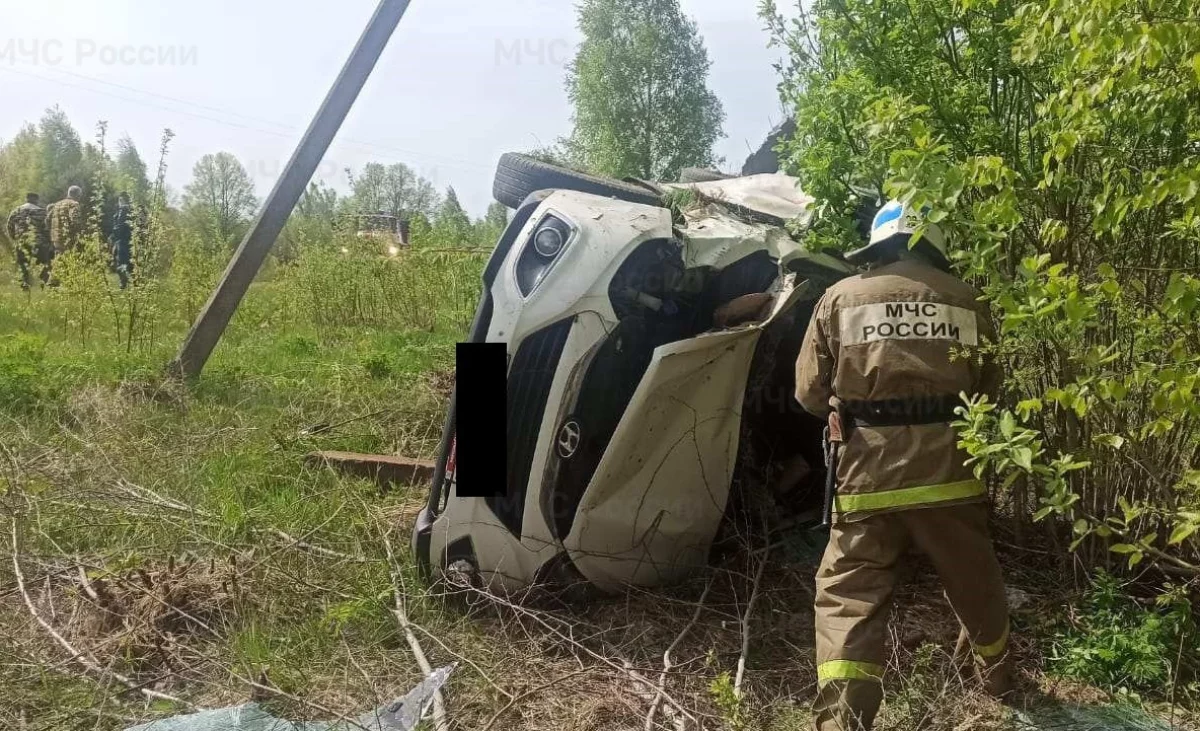 По предварительным данным, в деревне Семенково водитель легкового «Хендая» съехал с дороги и врезался в столб. После этого автомобиль перевернулся.