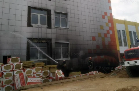 По предварительным данным, загорелись стройматериалы, находившиеся рядом со зданием.