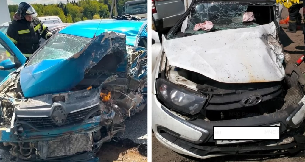 По предварительным данным, 40-летний водитель «Рено Логан» двигался в сторону Калуги, выехал на встречную полосу и столкнулся с фургоном «Фиат», а потом с фургоном ВИС. Отлетевшими от машин осколками повредило также «Мицубиси», ехавший в сторону Москвы.