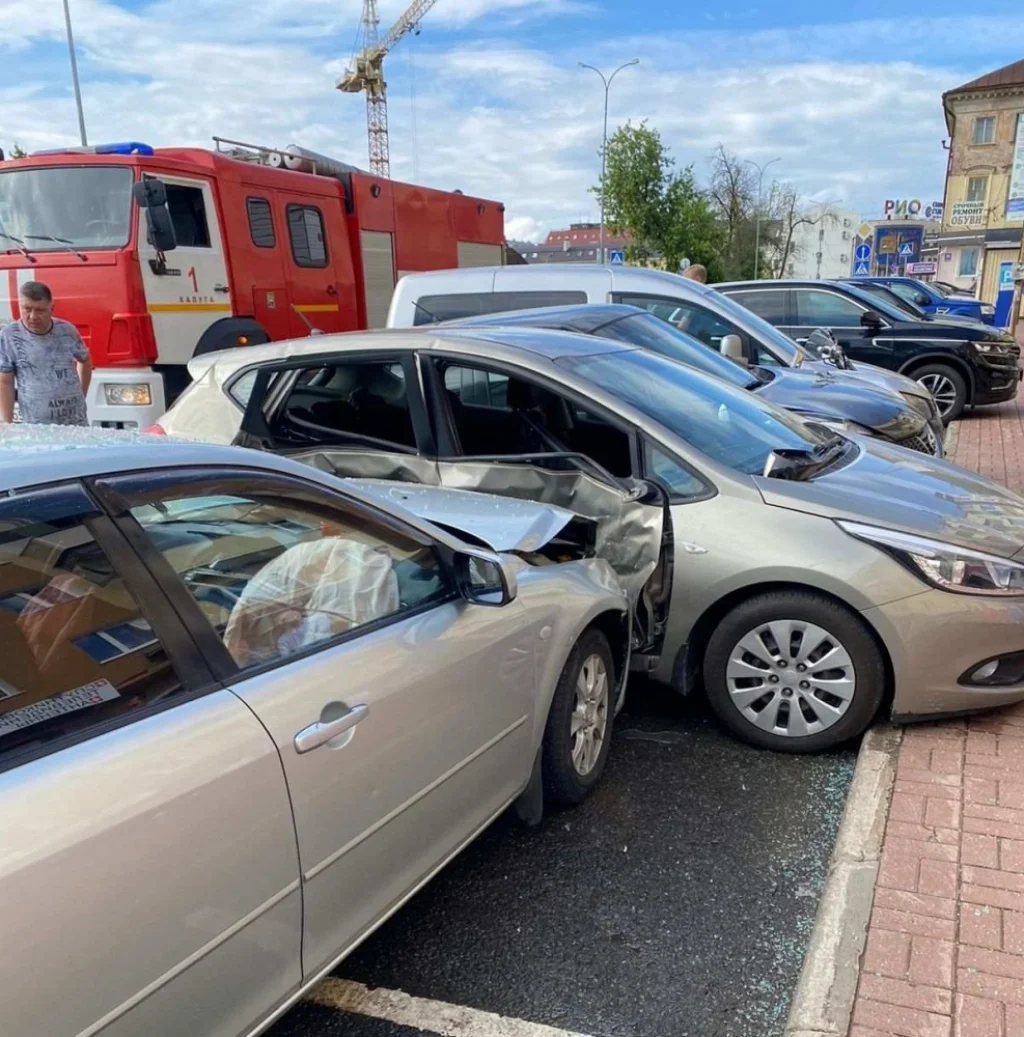 Около 16 часов 20 минут на улице Марата автомобиль «Мазда» влетел в припаркованный «Киа». От удара «Киа» столкнулся с другим припаркованным транспортом.