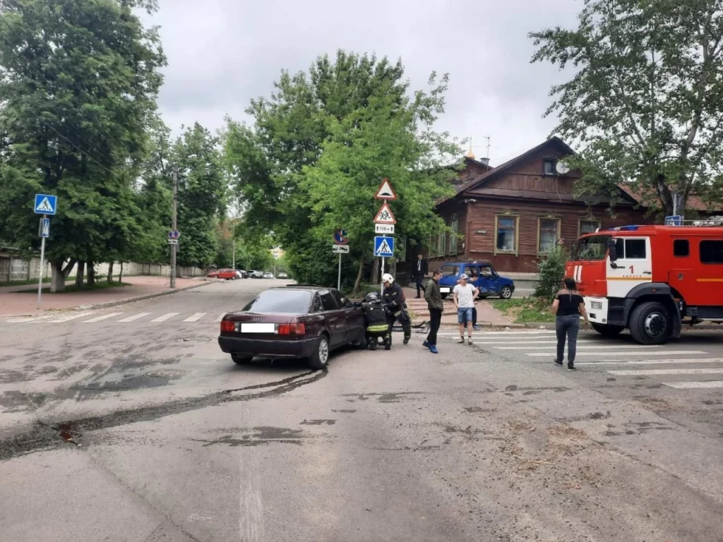 По предварительным данным, 37-летний водитель «Оки» ехал по Мичурина и не уступил дорогу «Ауди». Ударом малолитражку отбросило на тротуар.