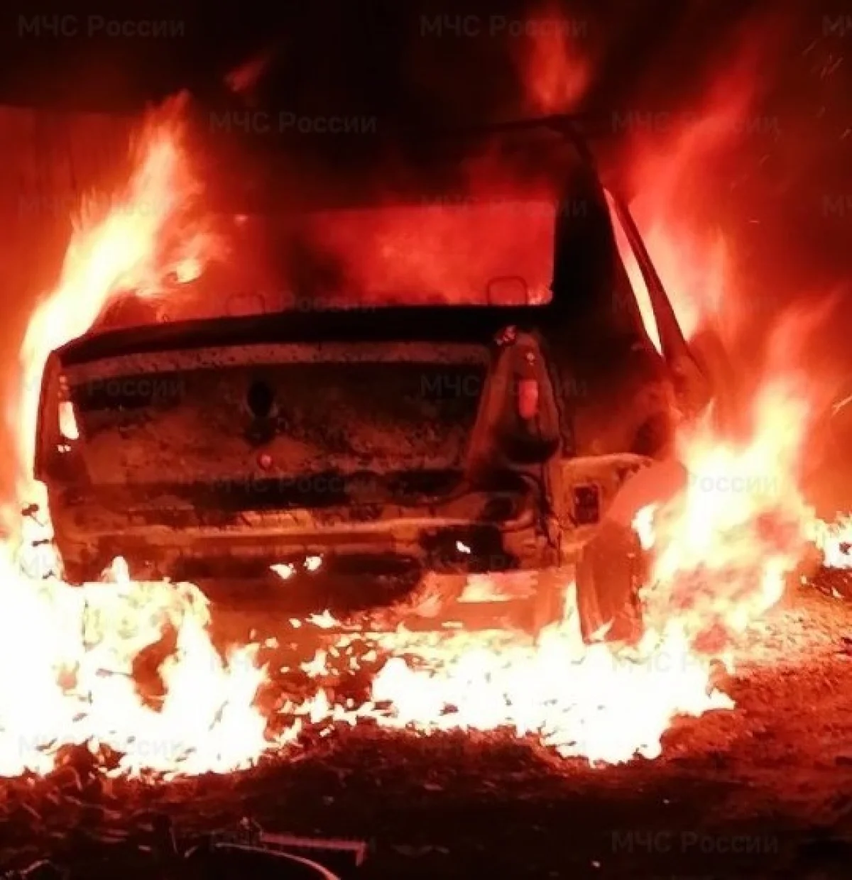 Пострадавших при происшествии нет, но сам автомобиль, по предварительным данным, выгорел полностью.