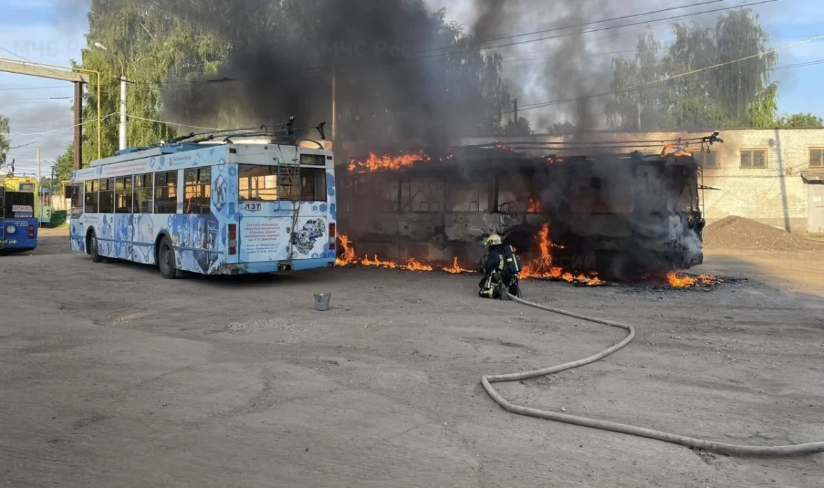 На момент прибытия пожарных общественный транспорт был полностью охвачен огнем.