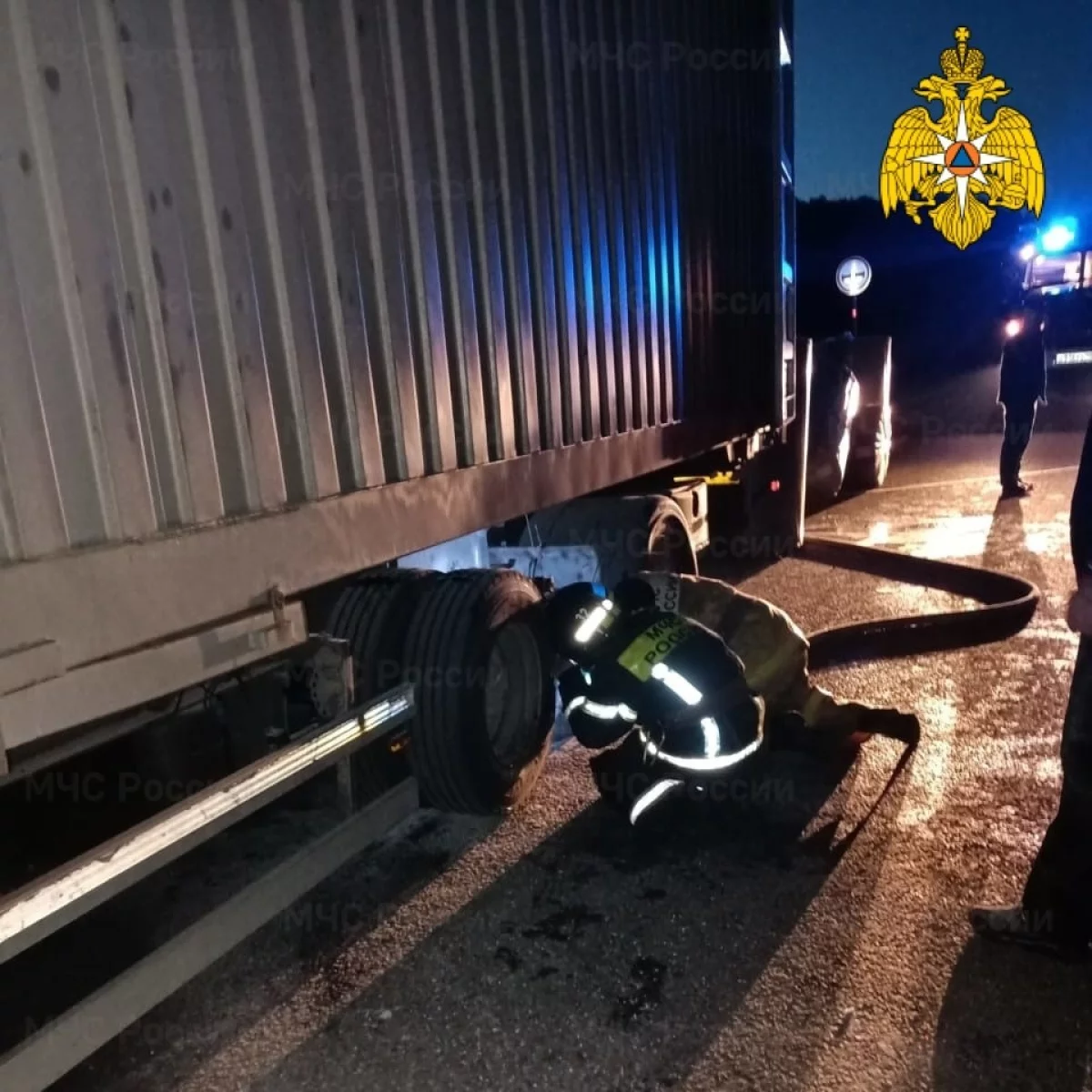 По неподтвержденной информации, у грузовика «ДАФ» горел полуприцеп.